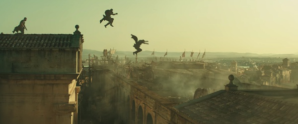 n然后还救了自己的女同伴,于是两人开始从刑场逃亡,又一次和圣殿骑士展开一场酷跑的追逐大戏。各种游戏动作搬到电影中来。不过好可惜没有第一人称视角,只是比较紧张的第三人称视角的追逐戏。