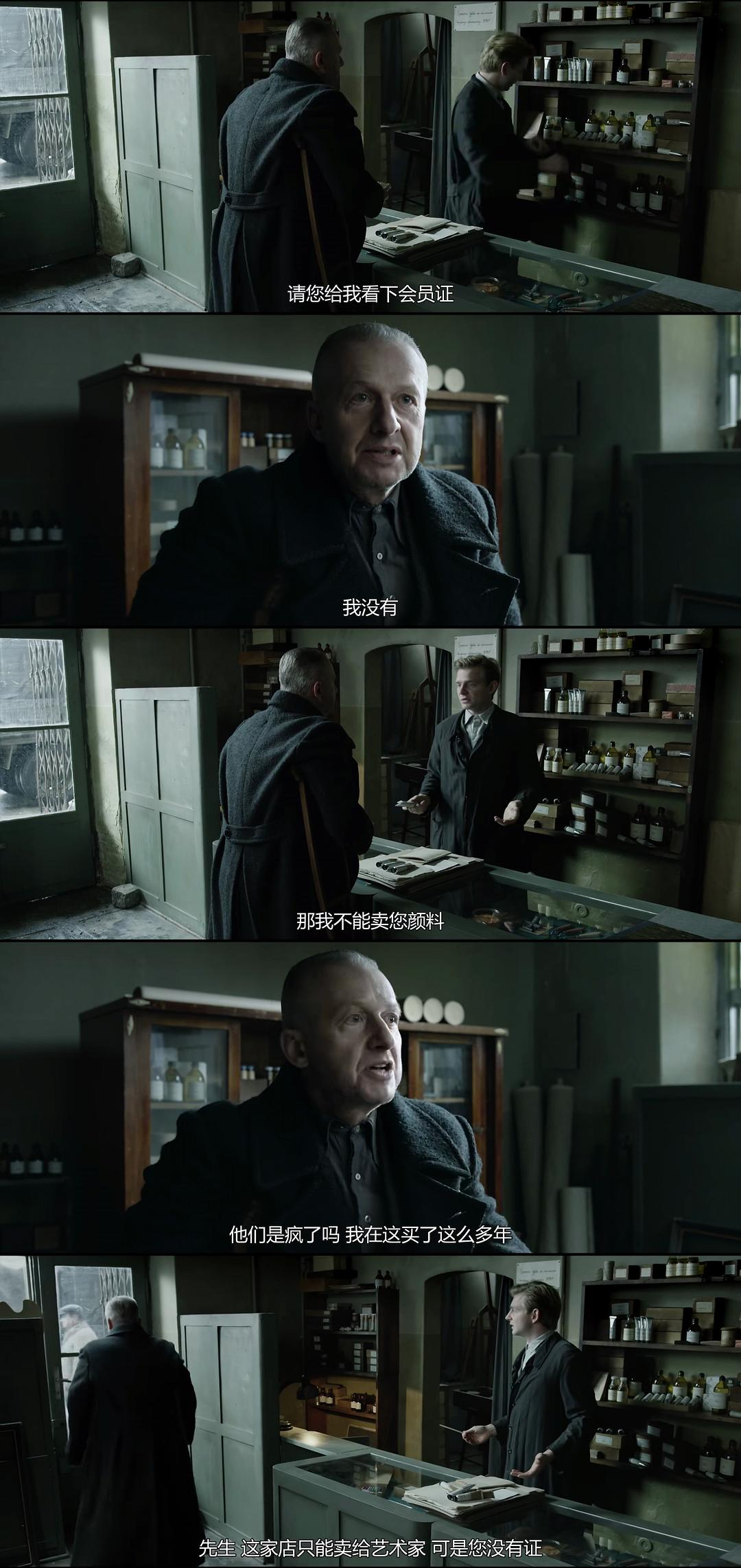 瓦伊达冷静清晰又简练纯熟地表现着这一陈年浩劫,不给予多余的篇幅,这或许便是老人家回望动荡年代时的心境,一如斯特热敏斯基在片中所言的——“现在发生的一切,不过是历史上的一阵风。”只是这阵风吹得时间不短,而身体本就残疾的艺术家(一战时失去了右腿和左手),显然耗不过它。