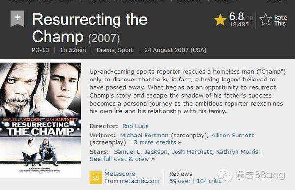 今天B.Bang给大家介绍的拳击电影是根据《洛杉矶时报》刊登的J·R·莫林格撰写的真实故事改编的影片【重整旗鼓】。豆瓣评分7.4。烂番茄新鲜度60%。