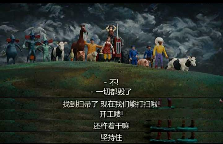 在这场与小偷的斗智斗勇中,整个小镇都毁于一旦,面对如此重大的打击众人开始失落,牛仔和印第安人立刻跑出去找到扫帚,对众人大喊“找到扫帚啦,现在我们能打扫啦!开工喽!还杵着干嘛?坚持住!”短短几句话,却让众人很快振作起来。
