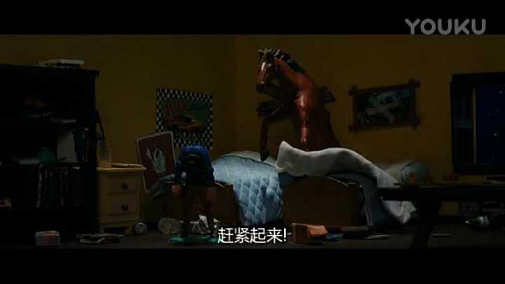 小马看到房子要塌,第一反应是冲上楼把印第安人和牛仔叼下床,一起驾车逃离。