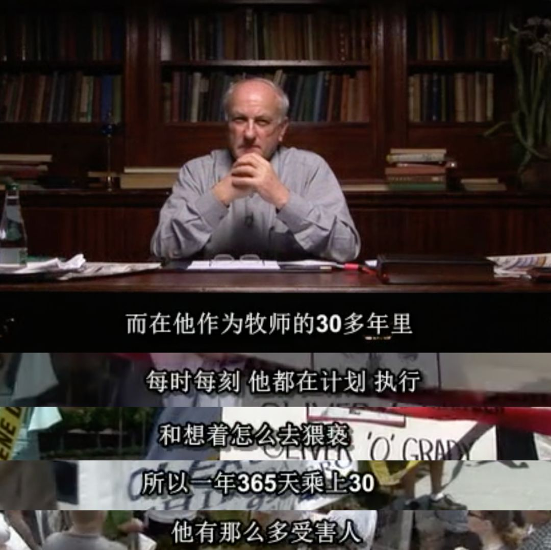 在美国,教会承载了无数人的信仰,是虔诚的信徒心中可以完全信赖的组织。n而作为上帝代言人的牧师,更是很多人的精神导师,受到人们毫无保留的尊敬和信任。n对于很多家庭来说,牧师就像是家人,是家庭成员之一。n他们放心地对牧师倾诉苦恼,让他进入自己的生活,亲近自己的家人。n殊不知,这样做有时是很危险的。n毕竟知人知面不知心,有些人就是披着神圣的外衣,行着苟且的恶行。n20世纪70年代,在美国加利福尼亚北部多个教区担任高级别牧师的奥利弗·奥格莱迪(Oliver O'Grady),就是这样一个人面兽心的恋童癖者。