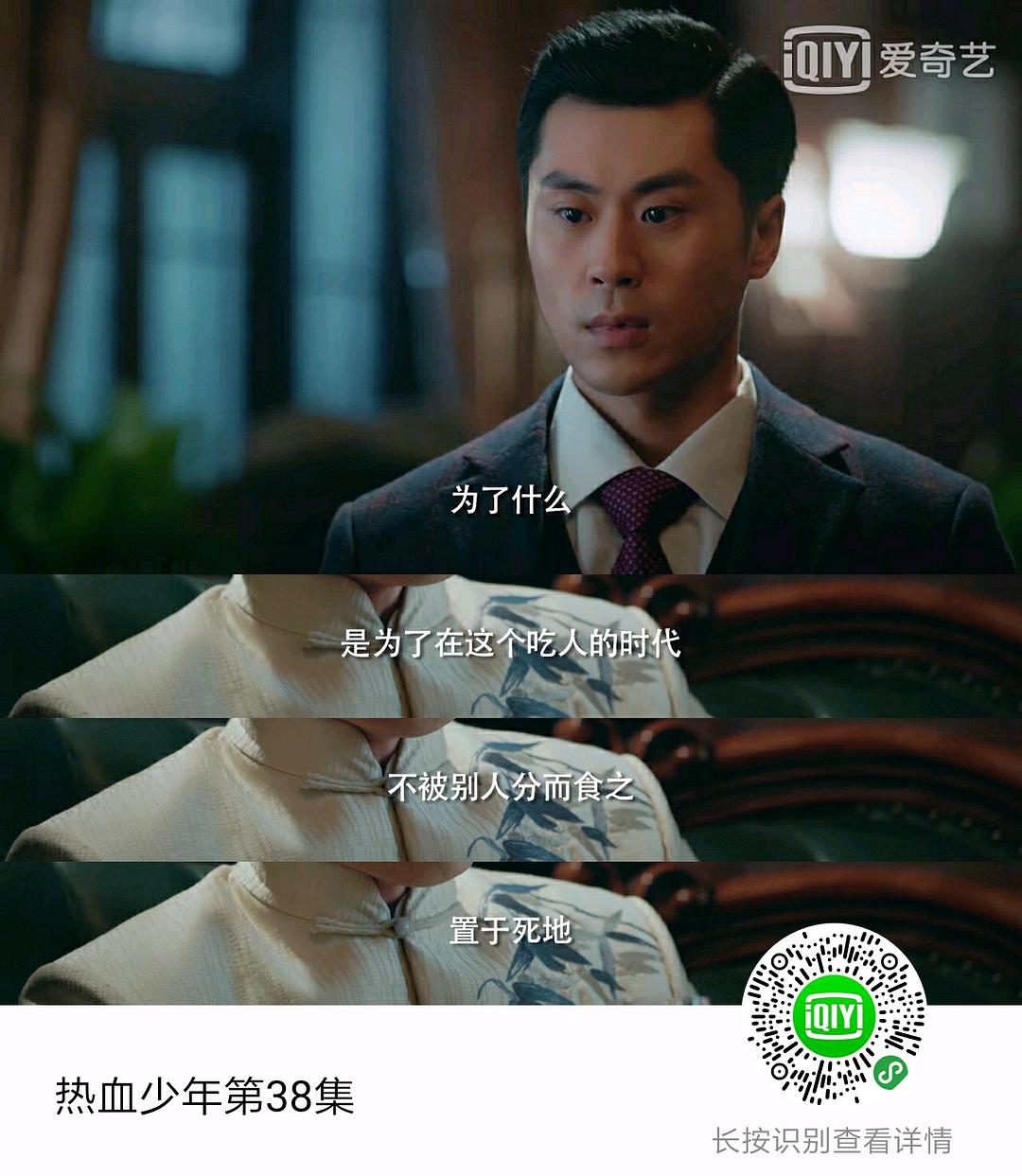 《热血少年》故事其实应该是兄弟俩一个在理想照耀下走上正途,一个深陷泥淖坠入黑暗,最后在命运的牵引下俩人对线。应该大力塑造的是恶的世道,是大环境如何裹挟人、扭曲人、放大人性的弱点,对比出正确的思想如何引导人、改变人、唤起人们的勇气。无论是吴乾还是风风还是新闸路的居民,都是权力倾轧的牺牲品。然而负责结尾的编剧只看到了兄弟阋墙,没弄好命运只搞了狗血……