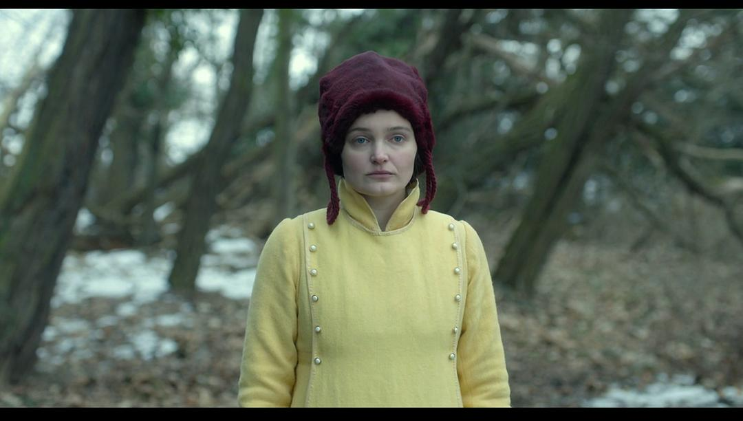 同样,在杰茜卡•豪丝娜的电影中,情绪得到了最大程度的消解。比较于移动镜头,固定镜头本身就是具有冷感的镜头形式。诗影像的两位大师:塔可夫斯基和安哲罗普洛斯,便是通过微移来使影像蕴涵诗意。对于杰茜卡•豪丝娜来说,任何可以引发情绪的处理都应该消除。因而在《疯狂的爱》中,海莉特的突然倒地被消隐在镜头外,通过女儿的惊愕表现;海莉特被毙身亡也以镜头外的一声清响来暗示;当诗人克莱斯特想要开枪殉情时,镜头对准的不是他的面部,而是后脑勺,这样就最大程度地瓦解了自杀这一戏剧性动作可能在观众身上触发的情绪。同样在《卢尔德》中,在女主角身上突然降临神迹的桥段本因被处理成影片的情绪高潮,但杰茜卡•豪丝娜让旁人的惊讶与兴奋安身于简单的神情中。