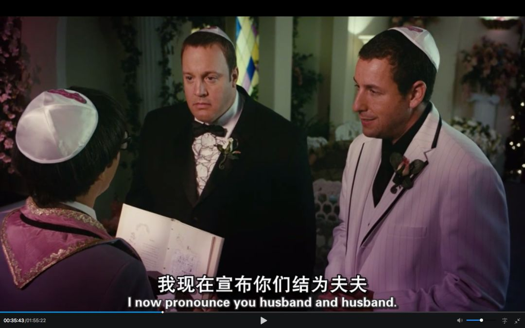 事实上,这场搞笑的同性婚礼中的两个男人,根本不是真正的同性恋,他们只是一对搭档而已,关系是纯粹的好友皆兄弟。这就为影片在主题表达上不再仅仅局限于同性恋这一话题上,全片看下来,我们感动的不仅仅是同性之间的感情,我们感动的是两个老男人的友情。男人间的友情比同性恋对于影片本身来说更有看头,男人的友谊不是女人间那样说说小秘密逛逛街发发牢骚出来,而是一种讲义气的友情,是那种当自己的哥们真的需要帮助的时候,到底会不会伸出援手的友情。所以,就算身为女性的本人,还是为这两个老男人的友谊感动的一塌糊涂。一个疼爱孩子妻子早逝的单身父亲,一个色鬼中年单身男人,两个身份生活环境截然不同的男人却是好朋友,最重要的是他们会去宽容对方努力去融入彼此的生活。