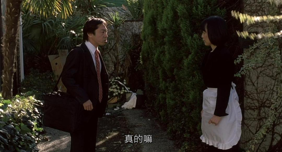 在这里,黑泽清表现出了他的非批评立场。他所做的,不再是“挖掘”社会症候背后的根源,而是去展现这种症候是怎样作用在个体身上的。家庭作为社会晶体的一个折射面,在其中“社会并不存在,存在的仅仅是对社会的体验状态”(Jules Moonerot);个体也是同理。人被一个又一个空间击中,其中不乏断裂、出离和滑稽(比如后半段一系列的戏剧性桥段),将人的种种行动粘连在一起的,并非宏观意义上落到语义实处的社会图景,而是人的体验,是身体在待定状态中的体验。