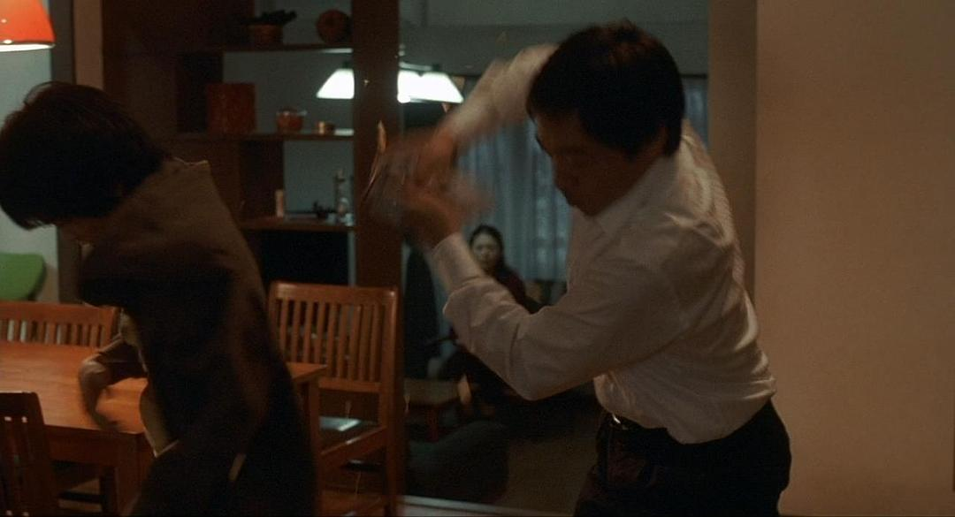 相似的,尽管因为身形的差异让父亲能够更肆无忌惮地对小儿子进行直接的肢体暴力,但在这之前,一个宣示般的动作仍然是面对物的:他抓起那包零食,狠狠地摔在地上——比他打小儿子的那一巴掌狠多了。所有宣示般的动作都是发泄式的,正如他的言语一样,它们并不解决问题。家宅中的男性都深深地受困在自己身体的记忆中,只能像孩童争抢玩具般宣泄自己的情绪。