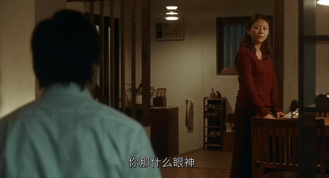 问题纠集在一起,作为电影必须有一个释放的出口(安东尼奥尼的电影除外)。当然在现实中,问题会无限期地存在,很多时候无解就是解决的方案。影片在三分之二后引入了役所广司饰演的小偷,以一夜之中家庭人物的戏剧性变化,试图给这个故事作结。妻子被小偷劫持,有了一趟毫无浪漫的意外之旅;丈夫拾到巨款却发生车祸,似乎也有了新的感悟;次子被警察逮捕关了一夜;长子因加入美军继续缺席。