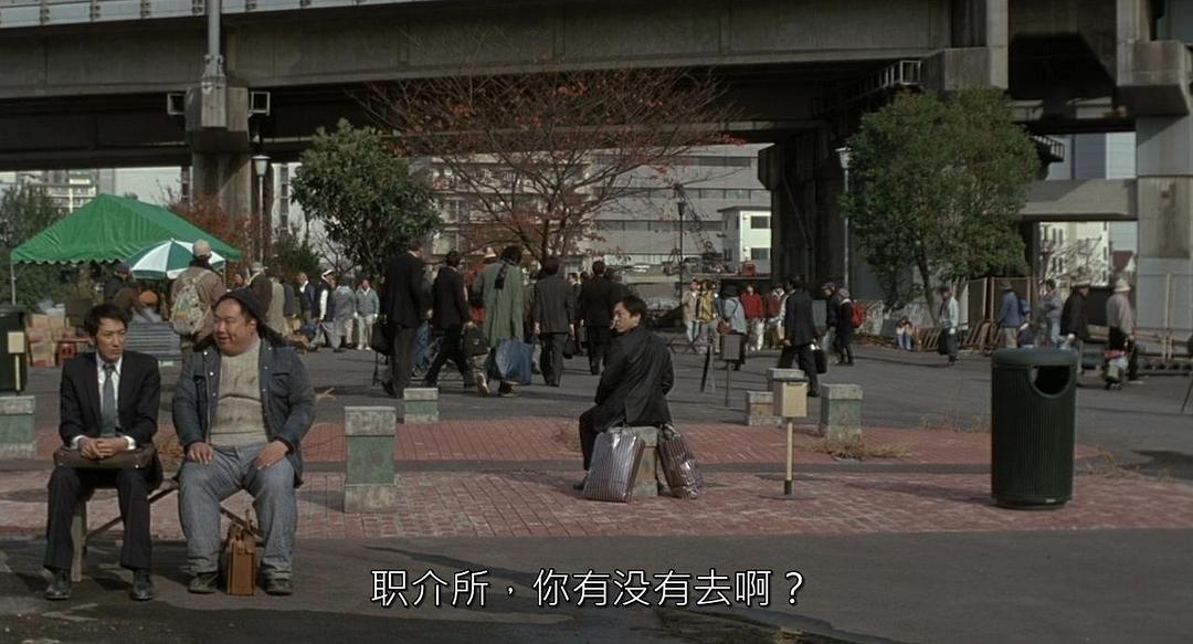 这种全无应对的变化——从有业到失业,将一个社会属性的人抛弃于人群之外,带来的不只是生活(生计、金钱等)上的失落,还有心理上的断层与失控。失业三个月的同伴无法承受被社会抛弃和欺骗家人的心理压力,选择自杀,正是对这一问题极端但真实的写照。