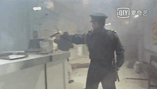 杀欧阳震华的戏就在电影里那个著名的长镜头里,那个长镜头影迷都了解,很复杂,电梯关门的一分钟里,所有工作人员要重新更换场景,电梯门再打开,已经到了“另外的楼层”。我们第一条拍坏了,电梯门卡住,因为那是一个假门,是人手推拉的,滑轮卡住了,算了,不得不继续拍,因为开门后,反应弹特别多,一开门就要打就要爆。