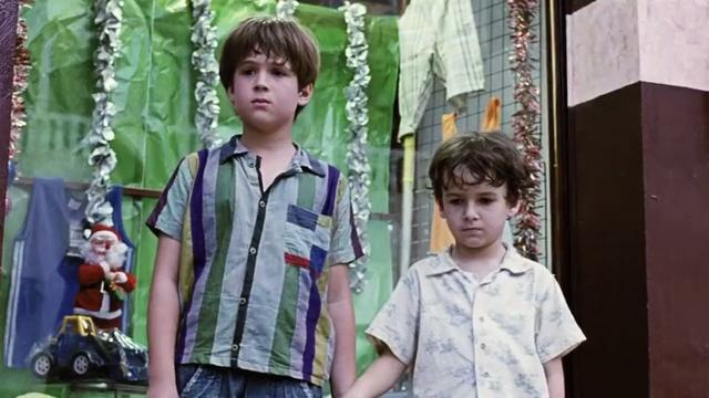 泽泽向哥哥埋怨父亲失业,哥哥狠狠推搡了他一把,骂他是恶魔,泽泽小脸憋得通红满是泪痕。小孩也确实是“熊”转眼就烧了邻居家的栅栏,但又去擦鞋挣钱给父亲买一包好看的烟,忏悔自己的话让父亲伤心。