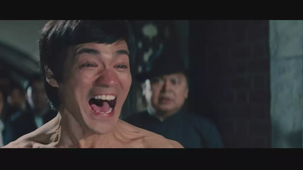 李小龙夸张的面部表情将每个“感情”都放大,变慢,特写,直到面部无法容纳他丰富的情感,就变为了肢体动作以及“嚎叫”,也就是夸张的舞台般的“武打”,这种武打其实是他个人情感的延续,是属于他个人的独特“肢体语言”,没有人可以模仿,也没有人可以超越。他就是一个人肉“致幻剂”。