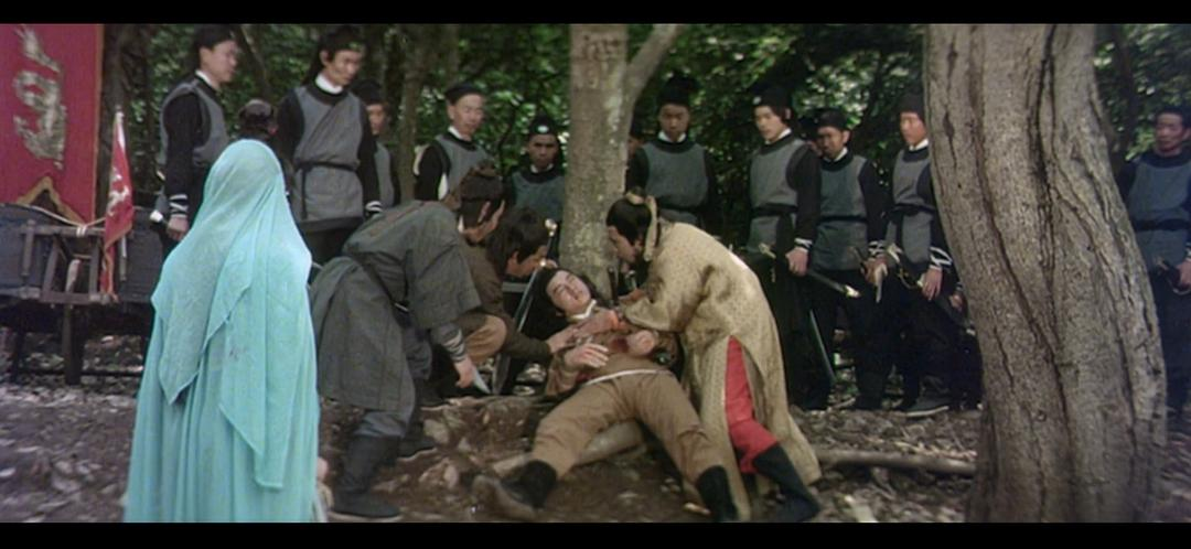 二、武打设计值得点赞,硬桥硬马真刀实枪,一掌一拳都配音得虎虎生风。镜头切换,剪辑转场都很熟练。罗维的动作戏已经轻车熟路。最后与小侯爷一战,小侯爷刀枪不入,罩门在头顶,似有抄袭之嫌。《鹰爪铁布衫》77年中上映,本剧制作期在77下半年。不过对小侯爷的致命一击设计得有新意,用腰带把他吊起,在石像上磕死(似乎是利用石人的鼻尖)。