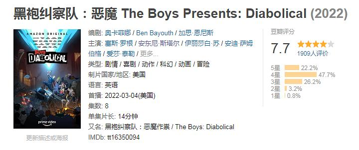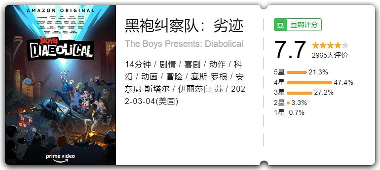 豆瓣开分7.7分,算是不错的表现,喜欢黑袍纠察队的千万别错过!