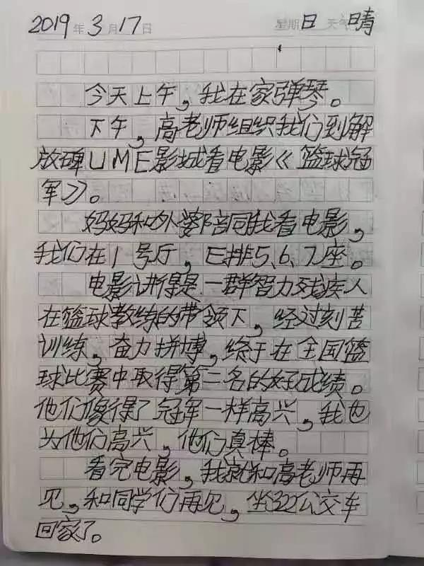 在这些评论中,令人印象最深的来自一名患有孤独症的小观众,他用稚嫩的笔迹写下了他的观后感。