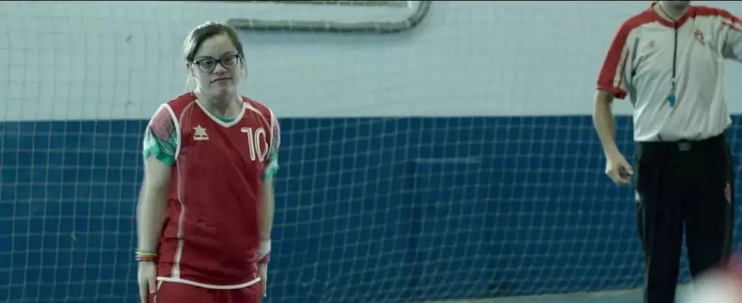 而影片中唯一的女队员科朗特,她拥有一张唐氏综合症患者标志性的脸庞,在剧中她是毒舌王,爽朗大方,说话总是一针见血。在赛场上,身高不足1.5米的她,是制造技术犯规的一把好手,一个女孩掀翻一个大汉,丝毫不在话下。