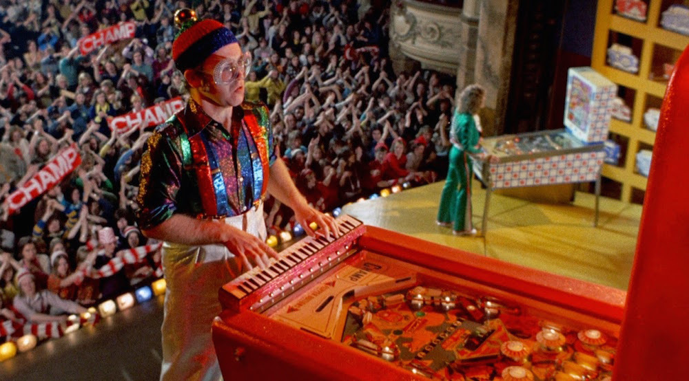 电影里John Reid与Dick James摊牌、成为Elton的专属经理人的场景里,Elton John正背过身玩着一座有Magic City字样的弹珠台,这正呼应着电影中下一首歌Pinball Wizard(弹珠魔术师)。电影里,Elton戴着“世界上最大的头饰”伴随旋转镜头演唱的Pinball Wizard,最初其实是The Who乐队1969年的专辑《Tommy》里的歌曲。《Tommy》在1975年被拍成了同名音乐电影《冲破黑暗谷》,《火箭人》在音乐剧的编排方面,很明显受到了这部超现实主义音乐电影的影响。《冲破黑暗谷》中演唱Pinball Wizard并踩着高跷、用钢琴键盘打弹珠的“魔术师”,正是Elton John,同年Elton的翻唱版本也作为热门单曲发行。另外值得一提的是,Pinball Wizard是《火箭人》电影原声带中唯一一首并非由Elton/Bernie创作的主要歌曲。虽然Pete Townshend的歌词也十分完美地匹配了Elton在《火箭人》中陷入的情境,此片在非英语国家上映时,Pinball Wizard的场景并没有像其它歌曲一样配上歌词翻译的字幕,这也可能是部分原因。