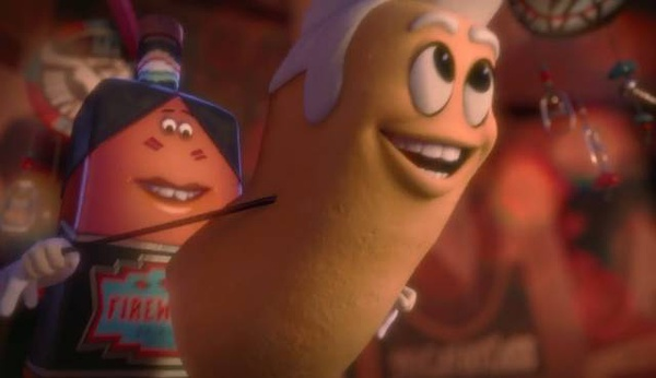 Seth一直不甘心做纯粹的商业喜剧。虽然《香肠派对》和《采访》一样都非常让人烦躁于似乎讲了点儿什么又似乎什么都没讲,他一直没有放弃绑架敏感问题来增加平淡故事线的看点。我看完电影之后非常担心Seth的人身安全,我要是个基督徒/民族主义者/女权主义者,估计都特别想扇他两个大嘴巴。从一开始食物们唱着歌称颂超市之外的美好世界,赞美神们(人类)即将带给他们的幸福生活,到食物们的命运最终被揭穿、歌谣都是谎言、人类都是食物的杀手,非常明显地比喻了基督教的末日论,又由主角揭穿事实真相,宣扬无神论。然后在各族食物的齐心协力下,弄死了(几个)人类,最终在盛大的、混乱的、喜庆的、锣鼓喧天鞭炮齐鸣的性&交派对上,实现了世界人民手拉手、打架不如玩深&喉的民族大融合的共产主义理想。