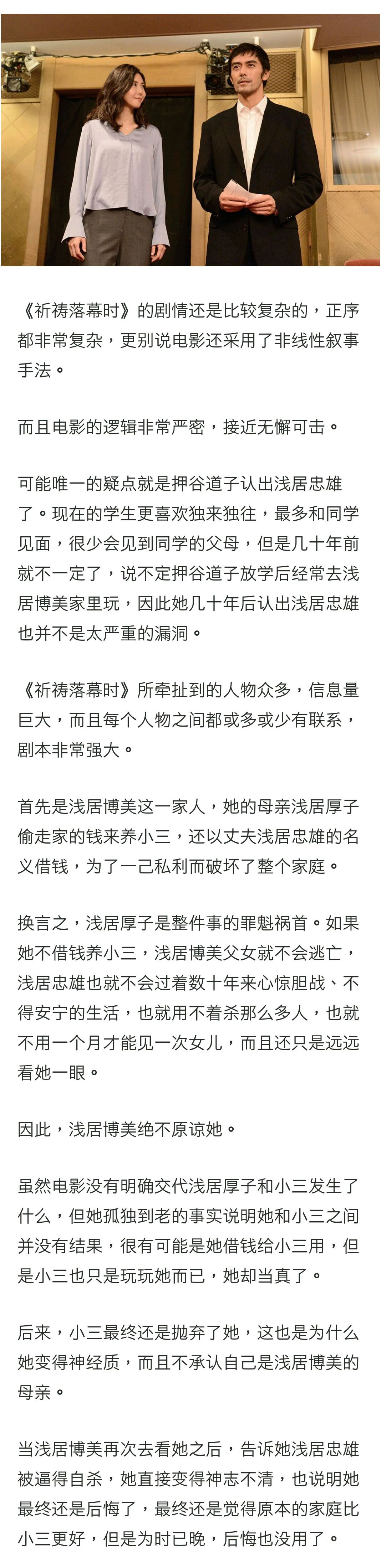 在《祈祷落幕时》中,重点讲述的则是浅居博美与父亲浅居忠雄(即绵部俊一)被母亲/妻子抛弃后的故事。