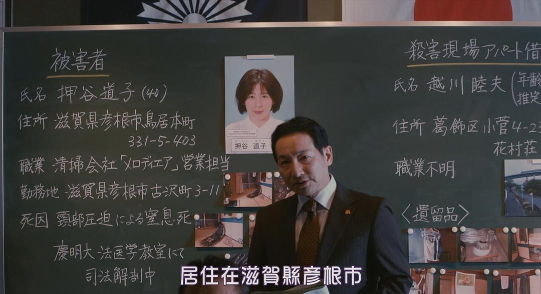 通过走访,得知女性死者是从琵琶湖地区来东京探访老同学的押谷道子,而她探访的老同学便是舞台剧编导——浅居博美,最后见到死者之人。