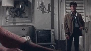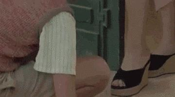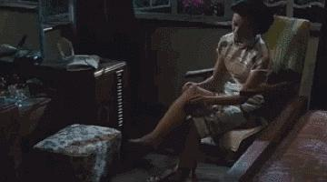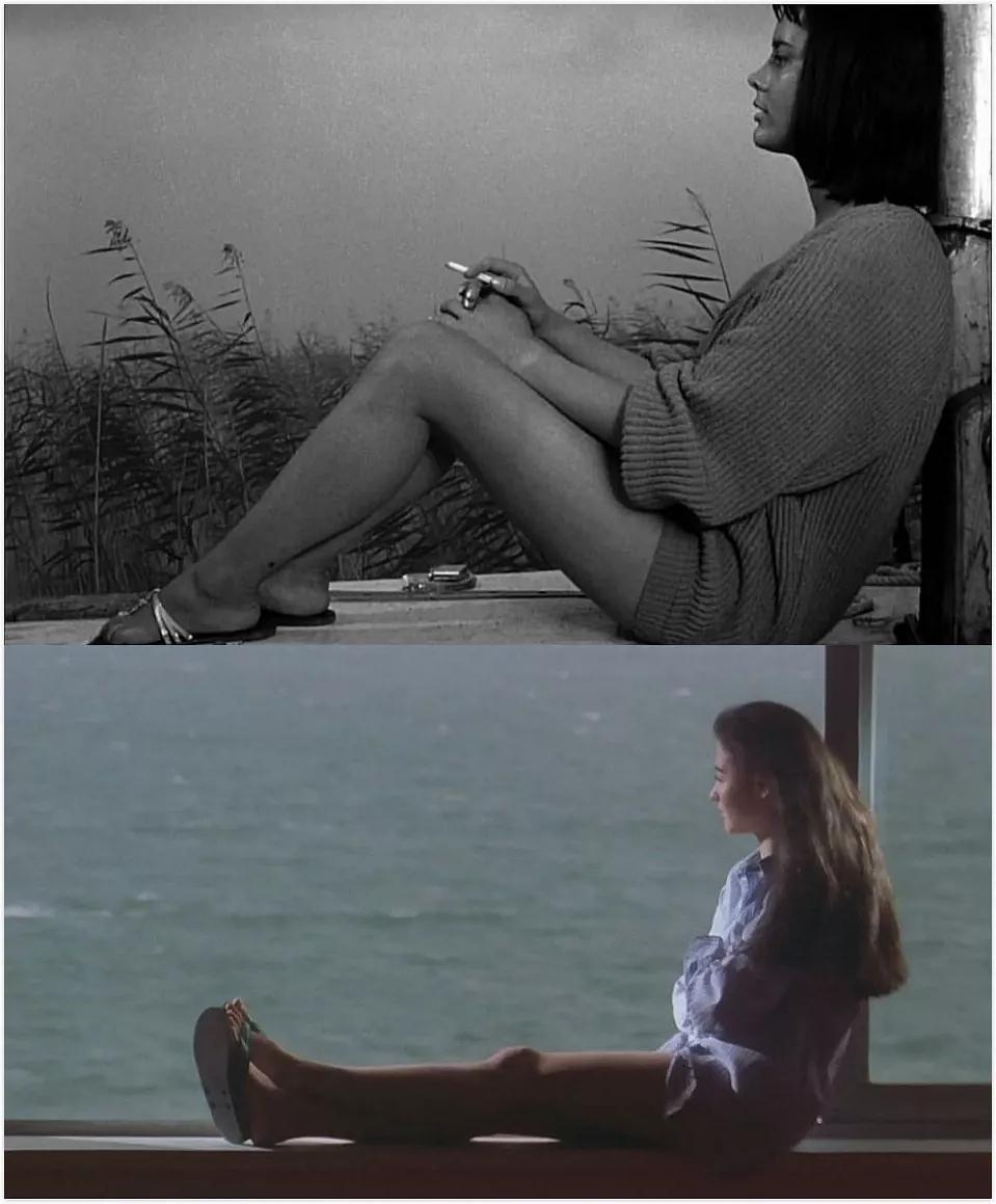 [射杀钢琴师],男主说,「别盯着她的腿,这样不礼貌」。[情杀案中案],女人岔开双腿看报,男主悄悄将目光移到她两腿之间。