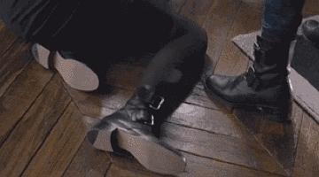 [真事改编]里,腿部镜头只占两三成。且多是俯拍,透过艾玛纽尔的目光,看伊娃坐在地上,淌出黑色的细腿来。