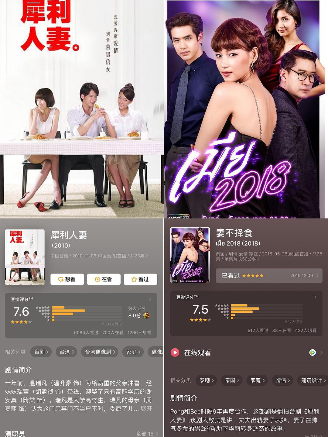 接下来不得不提到另一部剧,也是台改泰剧,改编自《犀利人妻》,这部改编泰剧《妻子2018》改编也是非常走心,自2018年率先在泰国播出之后,便是斩获泰国民众各种好评,剧中的男二Film也是凭借该剧中的暖男角色深受泰国人民喜爱,一夜之间便家喻户晓,IG粉丝上升速度成为2018泰国最高的一位男星,一举成为泰国GMM旗下 ONE31台的当家小生。2019在国内腾讯视频一经播出,也是获得了不俗的点击率,成为腾讯泰剧搜索榜排名第一的泰剧。