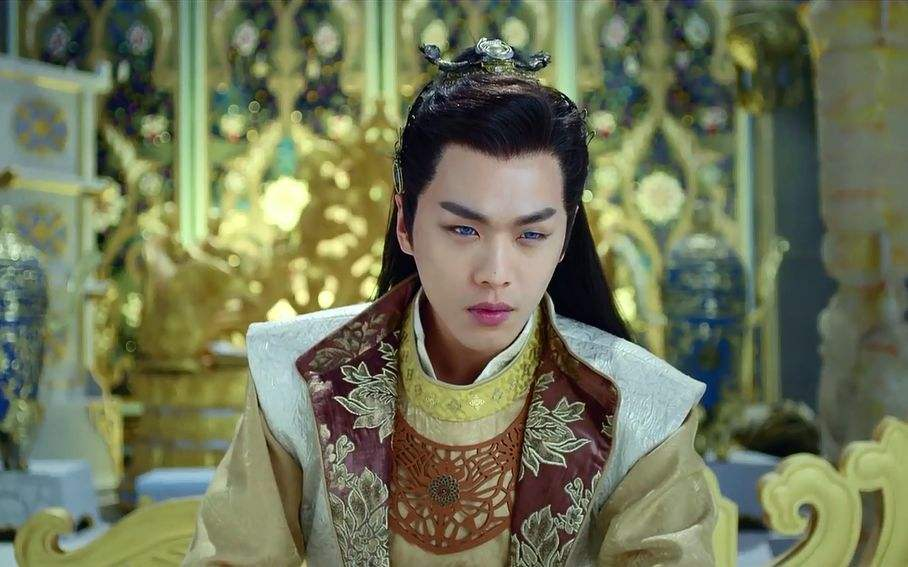 张若昀在《九州天空城》演羽皇,造型的问题除了对剑眉的理解有偏差,还有就是一张厚唇怎么也难美男起来。