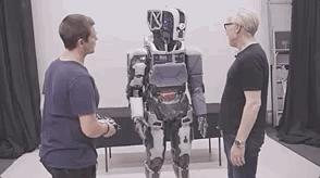 整个机器人非常逼真,质感很强,一个回眸一个转身都是戏,这是因为她里面住了个人。