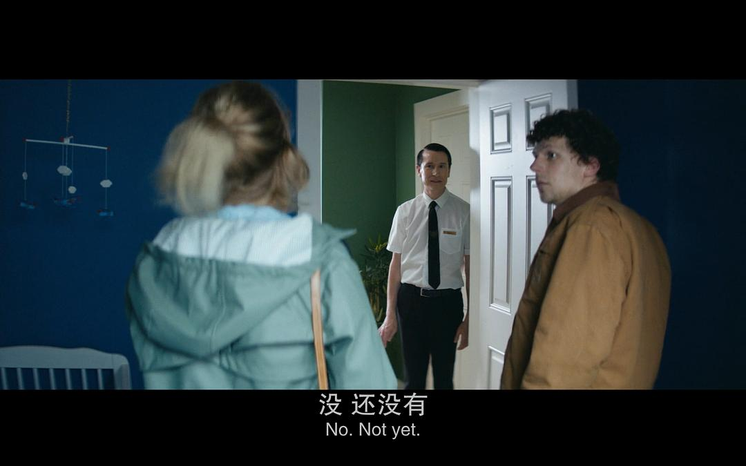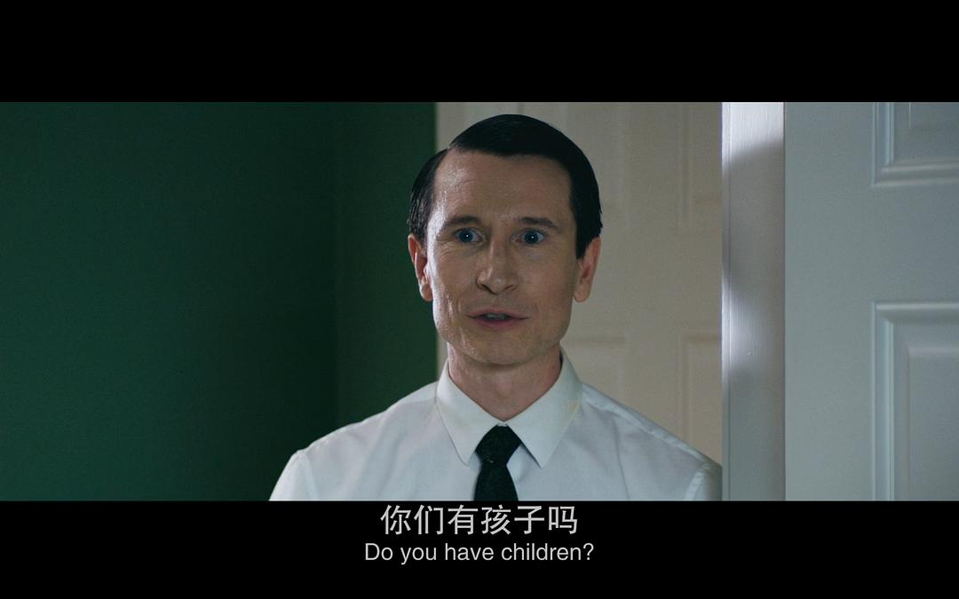 然而,当房地产经历出现的时候,你就会感觉到一股扑面而来的诡异气息,房地产商的面部表情僵硬,语气十分诡异,让人觉得他一定不是一个靠谱的人。甚至之后带夫妻看房时,房产经理问女主,“Do you have children?”,女主的一句“No, not yet.”也引来房产经理的怪异的复述嘲讽。
