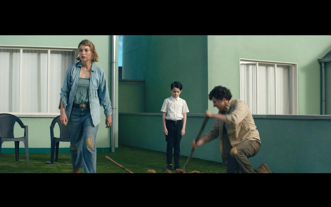 镜头一转,卷西和伊莫珍普茨饰演的夫妻出场,他们是一对儿幼儿园工作的夫妻,卷西负责修建树木,伊莫珍饰演的幼儿园教师。他们充当的依然是某种程度上养育的职业。