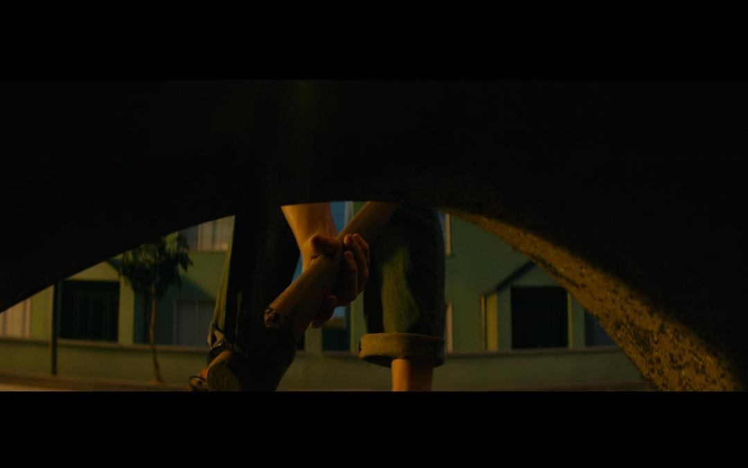 值得注意的第三个画面是男女主角从房子里出来,想开车离开小区(生态箱),影片中用的是垂直俯视角跟踪或者叫做上帝视角的方式。(试想一下你在观察蚂蚁之家的时候,盯着一只蚂蚁看的时候,是不是不自觉的就会用这种视角观察)。说明他们已经是生态箱中被观察的生物了。同时平铺的画面和在被路牙线条的框定的路内行进就如同蚂蚁一样,也隐喻了他们是在被更高维的生物观察。电影后来也有不少镜头隐喻这个生态箱是在更高维的空间。