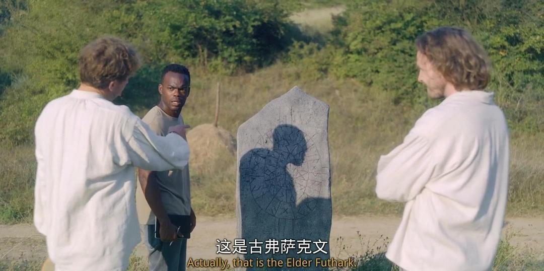佩尔的兄弟向乔希介绍“哈嘎”石碑上的文字为古弗萨克文。