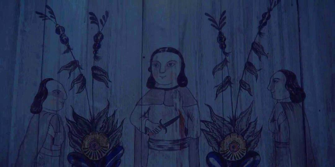综上可以看出,导演在细节方面做了很多,拼凑起这个故事。整个村庄是一个古老的尚未开化的封闭聚落。这个聚落有一套完整的哲学体系来支撑自己的宗教仪式。同历史中许多其他古老的部落一样,繁衍与丰收是这个群体最为重要的事情,因此所有奉行的宗教仪式均为祈祷作物丰收以及子嗣繁育。就如同世界上其他原始群落和文化(如大洋岛的土著人或是印度教),这个群体也有十分明显的生殖崇拜,并且在这电影里表现的非常明显。如下图,小姑娘在成功交媾之后,换上了精致的衣服涂上了大红唇,意为由少女步入成熟。在这个镜头之前还有一个十分精彩的镜头,是一个姑娘穿着衣服白色衣服,但在胯部有一个跟明显的红色长条状的物体,显然是在拟物男性生殖器。同样突出了这个群体的生殖崇拜。性崇拜对于原始部落极其重要甚至是他们文化中贯穿始终的哲学,这样的崇拜实际上是原始部落对于作物丰收人丁兴旺的朴素愿景。
