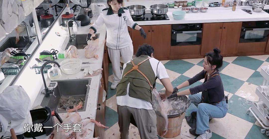 黄晓明听了之后,立马说,自己可以帮着拔毛,刘畊宏也自告奋勇地说,等自己直播完了来拔毛。可是真正到了拔毛的时候,只有小羊和章若楠来帮忙。黄晓明和尹正去买菜,殷桃重新整理菜单,陈立农在收拾厨房,看着似乎谁都没闲着,但是他们干完自己的活去帮助詹师傅拔毛了吗?
