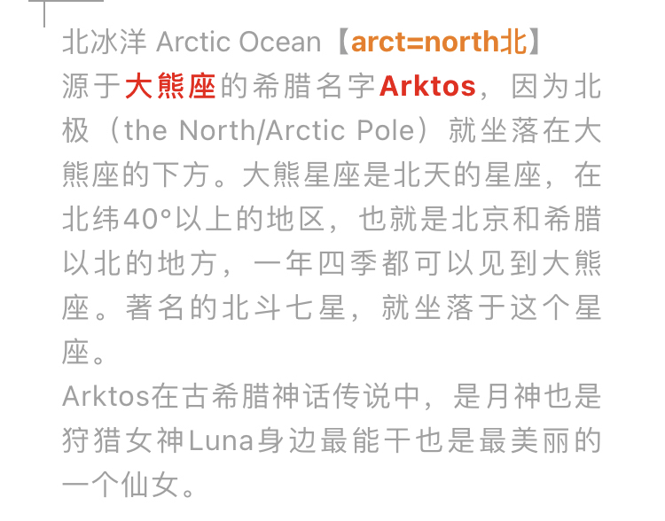 更严谨的说法其实是:antarctic来自古希腊语ἀνταρκτικός (antarktikós)= ἀντί (antí, “opposite”) + ἄρκτος (árktos, “bear”) + -ικός (-ikós, “-ic”),“anti-”并不是“没有”的意思,而是“在…对面”;此外这个熊指的是大熊星座而不是北极熊…????????