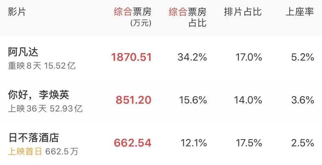 首映当天,排片占比第一,但票房却远低于重映的《阿凡达》,甚至不如已经上映一月有余的《你好,李焕英》。