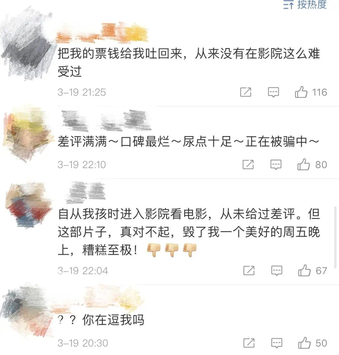 与糟糕票房一起来的是铺天盖地的差评。
