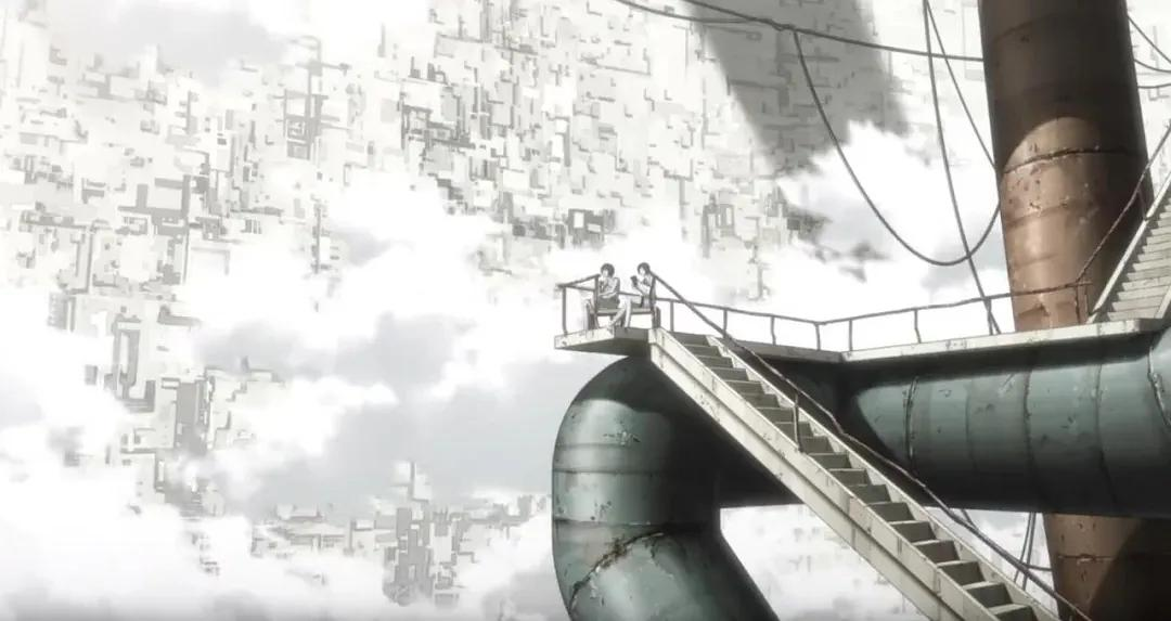 静野 其实还真做了,虽然非常粗糙。你知道片中有整个希德尼娅剧烈摇晃内部崩坏的场面,为了制作这里的影像,我们需要对希德尼娅到底有多巨大有个概念上的认识。所以我们还真就做了个简单的希德尼娅内构,大厦就用简单的长方体往里一个个插上,用来做这段背景美术的3dguide。