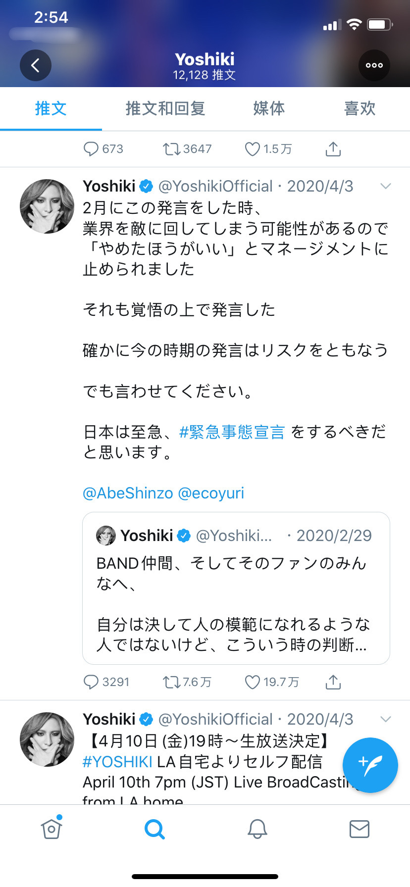 这才是摇滚哲学家!疫情期间不断转推防疫知识,十分硬核!直接叫嚣!过后安倍政府才发表疫情紧急事态宣言!其他明星受限于经济公司屁都不敢放一个,对了,yoshiki22岁时,在我这个年龄就开公司当林老板开超跑了!非常有经济头脑!