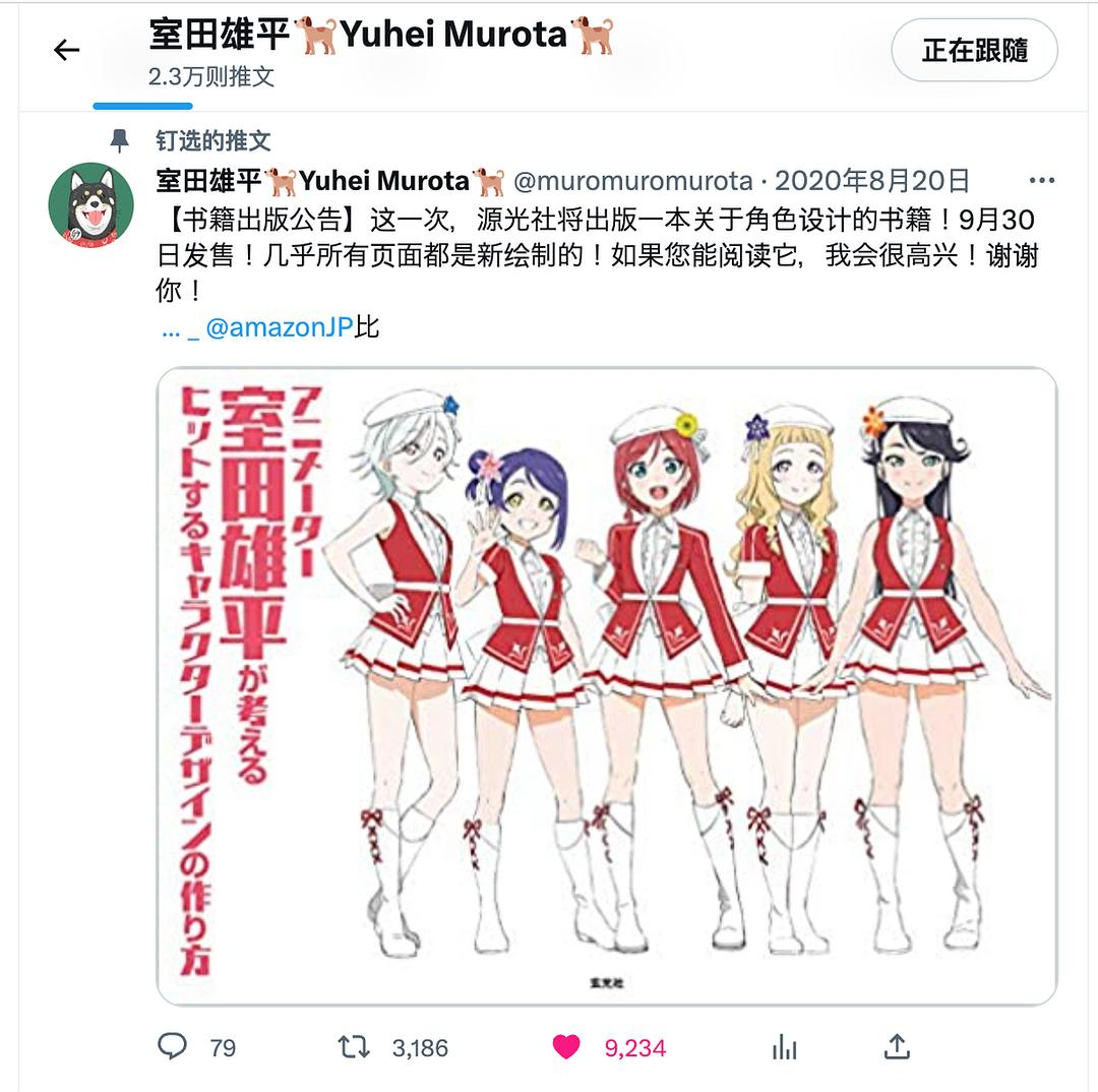 这次北京科学技术出版社引入的《Lovelive!动漫偶像人物设计教程》,由“Love live!“形象设计作者室田雄平老师亲自操刀,是国内首套绑定“lovelive”ip、设计者的教程。其实与大多数的漫画作者类似,室田老师的性格偏内向,也有日本作者不爱抛头露面的性格,日常在家工作,养了一只秋田犬,twitter也是秋田犬的头像。