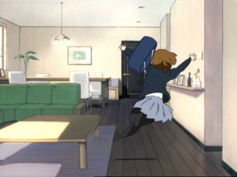 说起来,要把四格漫画改编成像K-on这样剧情连贯的单元剧也不是一件简单的事。相比之下,lucky star与天体战士之类的直接就小故事化的动画自然就显得无所谓,但像K-on这样要自成一体的单元剧就不能这样玩了:虽然时间主轴推进得波澜不惊,但场景的切换稍显生硬却是无可避免,毕竟staff的用心大家也体会得到,自然不会多加指责,甚至对于某些分镜还要大加赞赏——最终话中MTV跑回家中拿吉他的那一幕,MIO的歌声夹杂着唯酱的独白,以及唯那跌跌撞撞的奔跑: