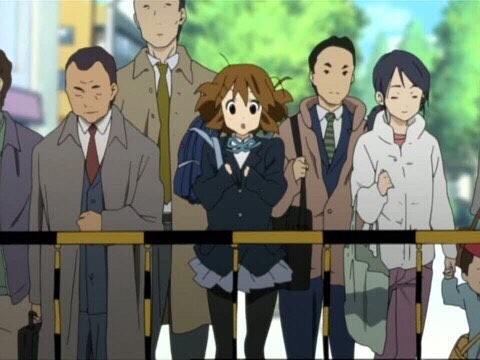 不知是否错觉,笔者总觉得律、澪、紬三人其实在第一集开头小唯奔往学校的路上就已经登场了,那几个模糊的身影,给我的感觉很相像……