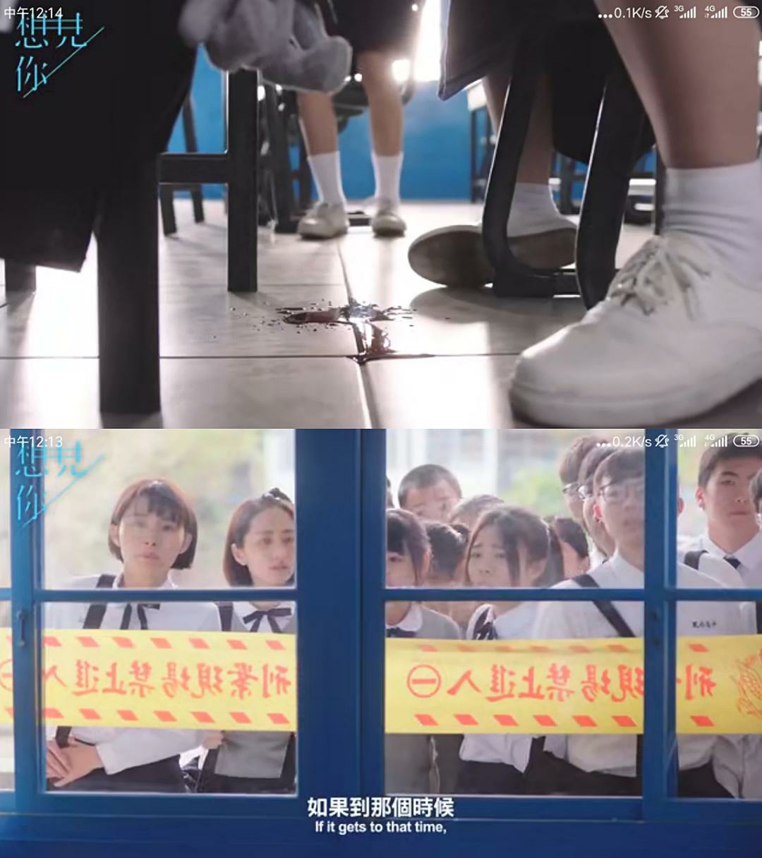 - 黃雨萱在走廊上遇到玩著籃球的李子維與莫俊傑,在李子維不小心撞上黃雨萱的剎那,歌曲循環符號出現,就此後兩者以及長廊變成了黑白色,獨留黃雨萱一人是彩色的 = 以黃雨萱的角度來說,李子維及莫俊傑都是屬於過往時光(1998年)的人物,而她則來自於現代(2019年),所以色調會有所區別,但因為穿越他們都碰了面、同處一個時代;