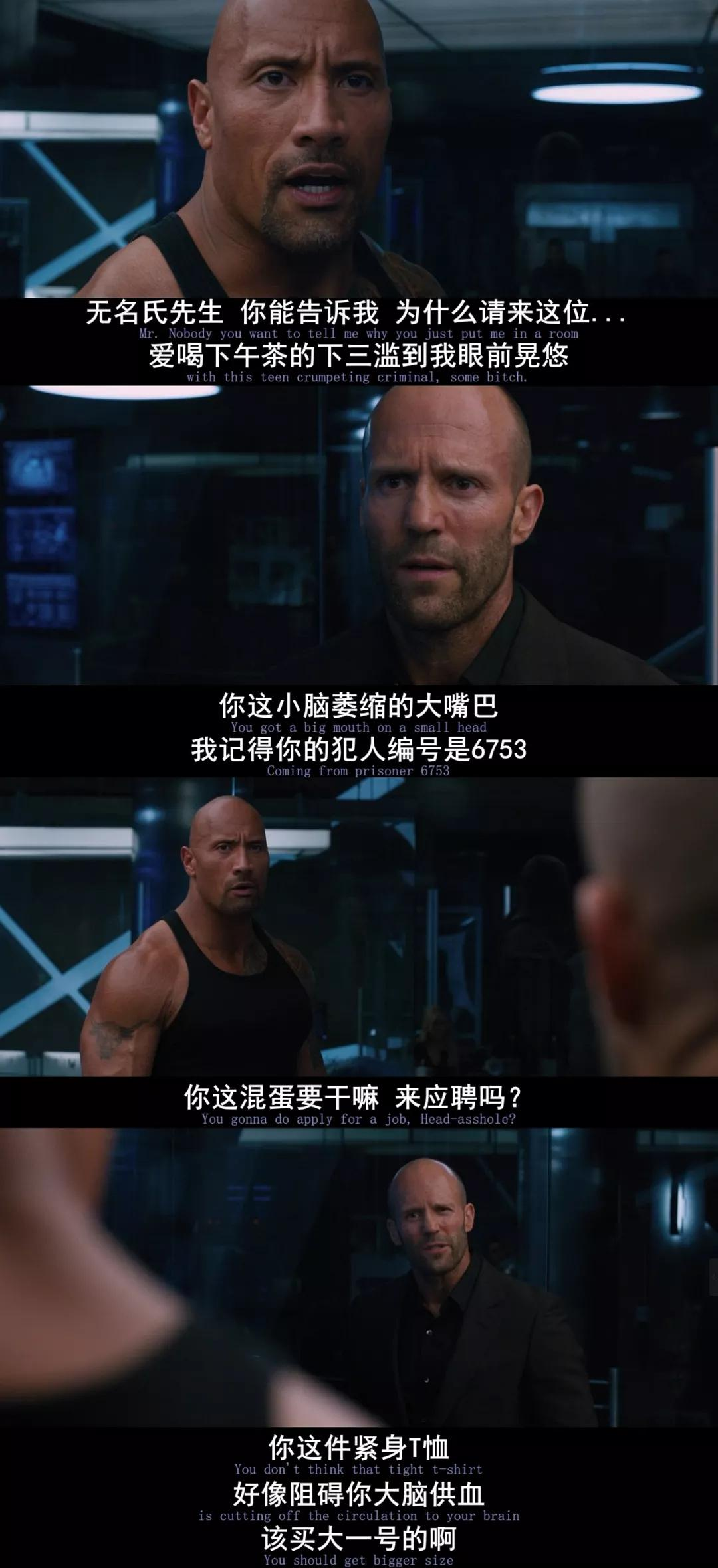 虽然最后《特别行动》的口碑也一般,但中国正式上映后不难想象各大社交软件上都会刷屏霍布斯和戴克德·肖恩打嘴炮的梗。