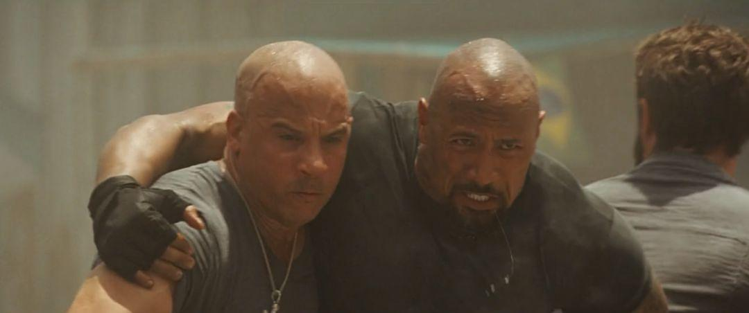 《速激7》霍布斯在一开头就被打进了医院,电影快要结束的时候才再次出场,所以这一部中他和戴克德·肖恩的对手戏并不多,他们真正产生火花还是在《速激8》中。
