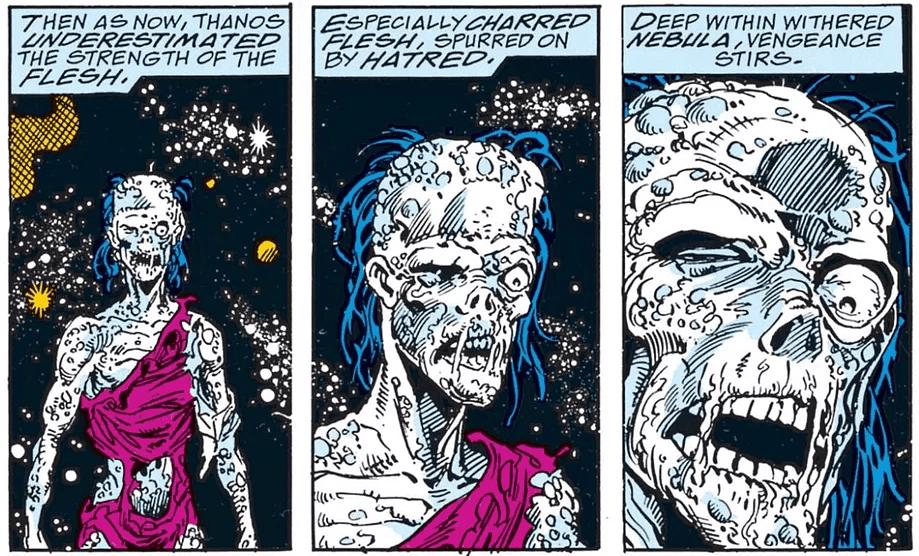 “灭霸之子”之一,幼时灭霸常常安排她与卡魔拉决斗,输的一方要将身体的一部分换为机械。星云几乎没赢过,故身体多处被替换成机械,并在一段时间对卡魔拉怀恨在心。2014年5月,与卡魔拉一同被灭霸派至罗南手下,参与宇宙灵球的抢夺。后失败,因偷电池落入君主星球(the Sovereign)首领阿耶莎(Ayesha)的手中,然后被卡魔拉赎回。2014年8月后,与卡魔拉冰释前嫌,但独自行动,踏上对抗灭霸的路途。