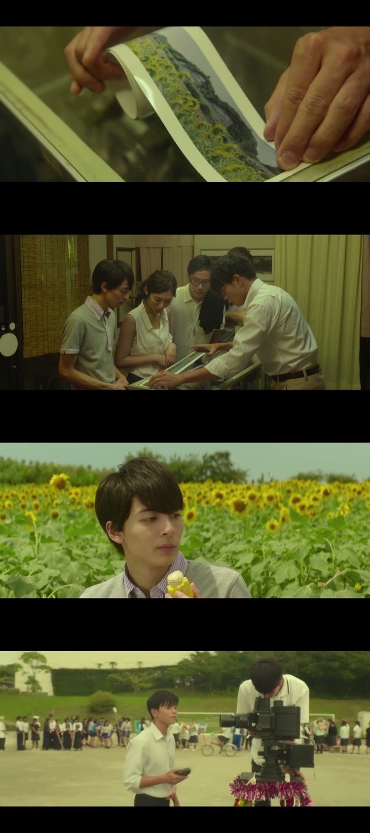 在照相馆老板宫本的建议和表姐温子的社交网帮助下,宏伸获得了到向日葵田主人智也的拍摄许可。美景之下,宏伸顾不上管笃志和志也为温子进行的battle,他用全景相机捕捉了光影变化下如梦如幻的向日葵花海。