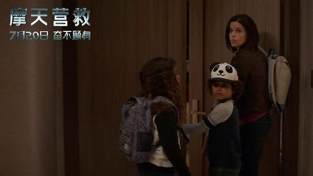 这时候大楼已经烧起来了,着火的是96层,火焰往上跑,本来只会威胁到赵员外他们,可是住在98层的巨石强森妻儿提前返家,结果也被困在了大楼里。这里我随便胡说八道几句,做一下过度解读。片中的火灾就像底层的怒火,真正的目标是最上层那些人,但是往往夹在中间的中产阶级会先被波及,而像赵员外这种,在现实生活中,人家早坐着直升飞机跑了。