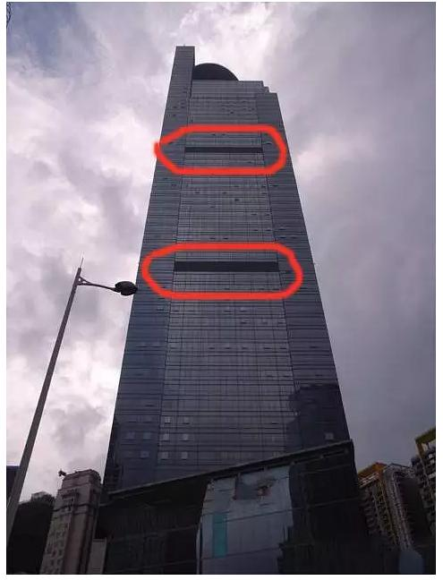 由于避难层外立面禁止封闭,所以大家可以在大楼每隔一段距离的外立面上看见这些空的楼层!那么,如果考虑了这个概念,电影中身处98层的主角妻子与孩子完全可以向上爬至105层的避难层等待救援!